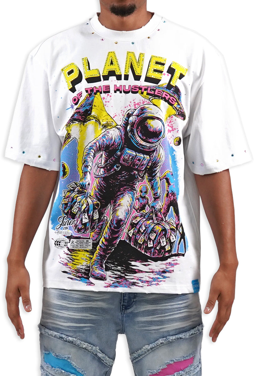 - Planet Hustlers White Shirt - Rhinestones