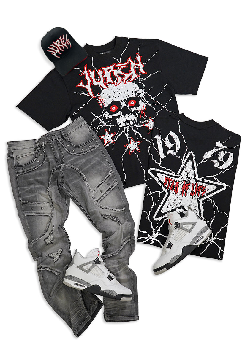 Star of Life Black Tee, Cement Utility Jeans and LTR Black Trucker Hat Combo
