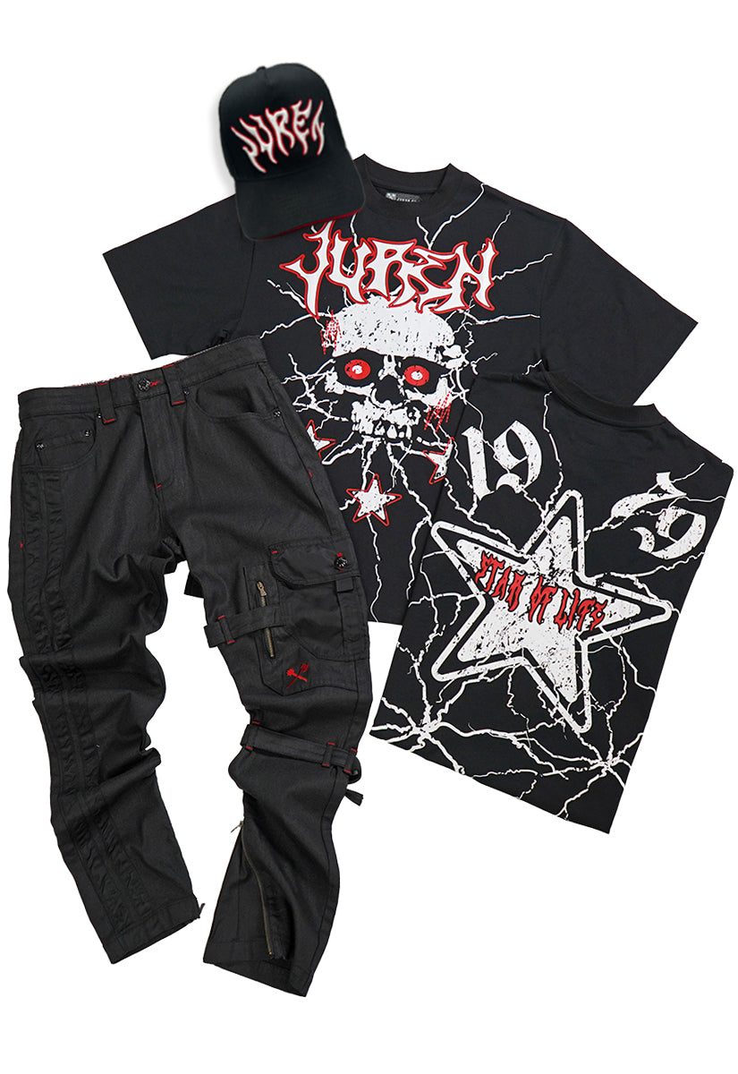 Star of Life Black Tee, Cement Utility Jeans and LTR Black Trucker Hat Combo Include: