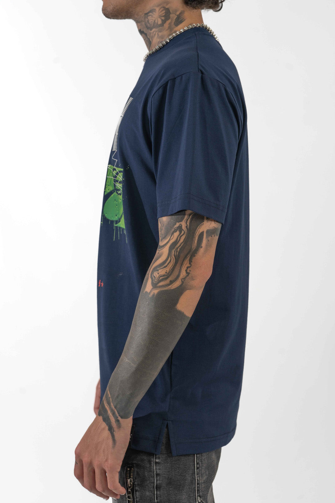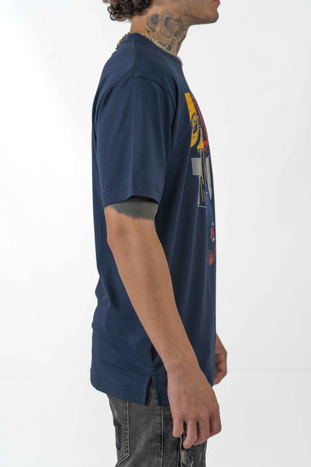 - Printed Graphic across the front of the graphic t-shirt